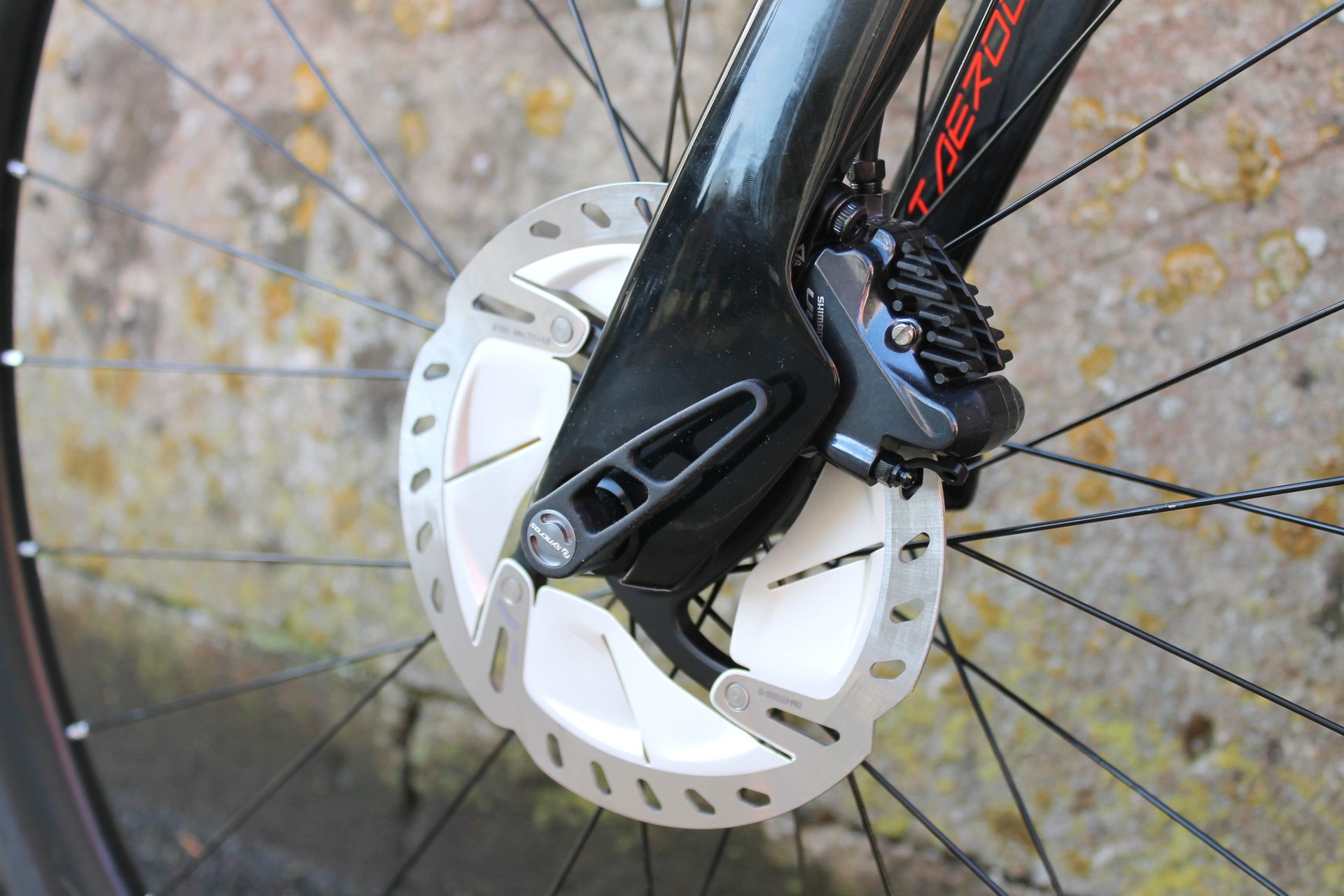 The bike’s raison d’être is aerodynamic efficiency, and Scott has retained the major shapes and ‘comfort zone’ features of the rim brake version, but took advantage of the recent relaxation in the UCI’s 3:1 tube profile regulation to introduce a redesigned fork and develop integrated shrouds around the dropouts. These help shield the calipers from the wind and result in a claimed net benefit of – wait for it – half of a single watt when rolling at 40km/h. At the back, Scott has also beefed up the brake-side chainstay with a squarer profile to help balance the disc brake forces.