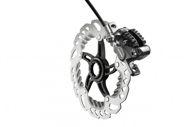 The Japanese component manufacturer claims a host of benefits for its disc brake system, including heat management on long descents, consistent braking in all weather conditions, and braking levels customizable to a rider’s size and ability.