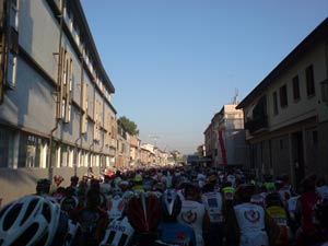 We woke to an early breakfast before the short ride from the hotel to our start pens in Treviso town centre at 6.15am. The pre ride nerves had already started… The start of the ride is always where self doubt starts to kick in. In previous years my preparation had been carefully executed with good long steady miles under the belt during the winter months. This year a repeatedly postponed surgical procedure had finally gone ahead and as a result had seen me miss the best part of three months riding at the beginning of the year. A brief spell of racing effectively put the mockers on my prep. So, with only about 100kms ridden at snails pace in the previous month I decided I would be able to get round the full distance if I just used my head…yeah right!