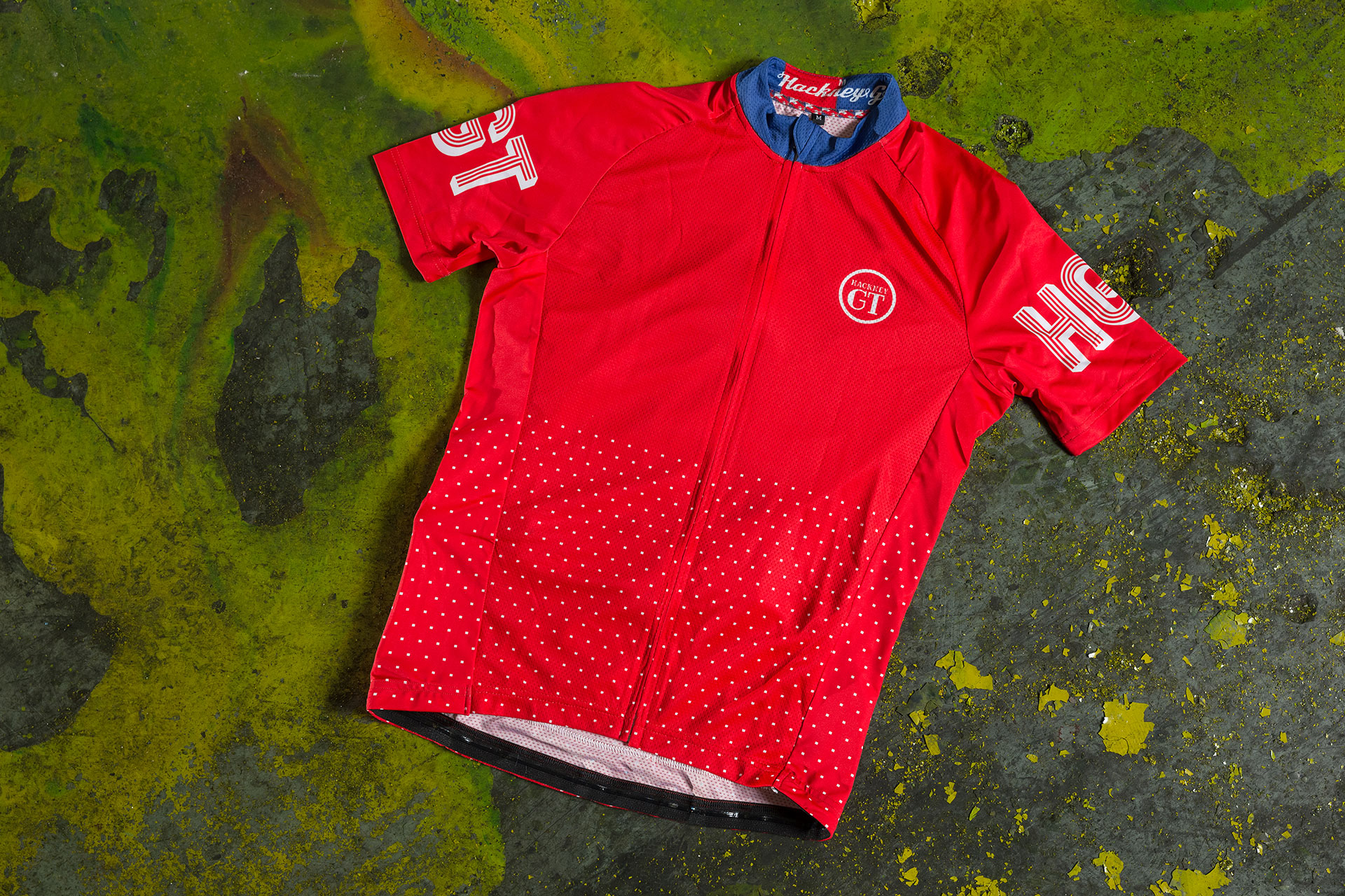 Yep, eye-catching red with a navy collar, white polka dots and bold branding is fairly ordinary by Hackney GT’s standards – but that’s part of what makes the London-based brand stand out from the crowd.