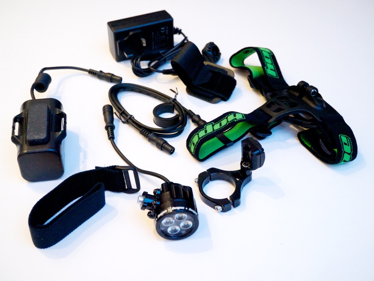 The R4 has been stripped of some of the features offered by other lighting systems (any indication of charge, for example), in and effort to bring down costs. The package we have is the Standard version and comes with a four cell, 5200mAh Li-Ion battery pack, mounting bracket and spacers to run the light on your handlebars, on your helmet, or even use as a head torch with the head straps.