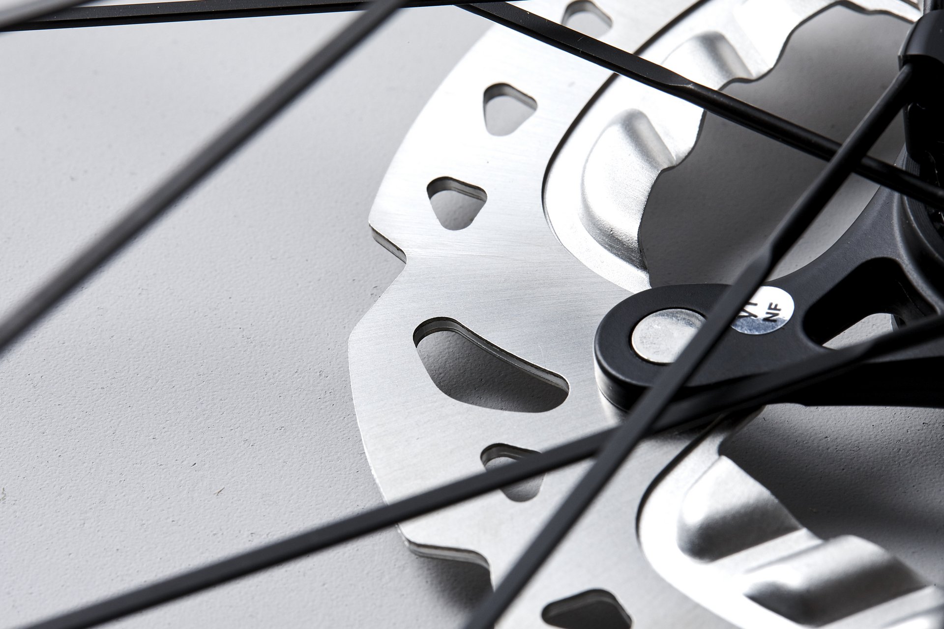 In reality, you’re talking about marginal gains – if any – in aerodynamic terms since although the alloy disc-specific rim has a rounded profile it’s only 28mm deep. What you’re really buying these wheels for is the weight as they’re impressively light for disc brake wheels at only 1,469g for the set.
