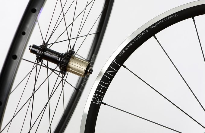 Top of the range is the Race Season Aero Wide Road wheelset (£459). They feature 31mm deep, 24mm wide rims and have a claimed weight penalty of 1,480g. Designed to be ridden with a 25mm or even 28mm tyre, Hunt claim that the wide profile of the rims will open out tyre profile and increase grip.