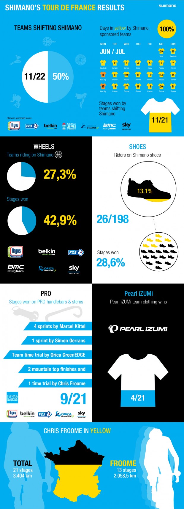 From lucky blue shoes to specialised handlebars, the infographic below highlights Shimano’s Tour by numbers.