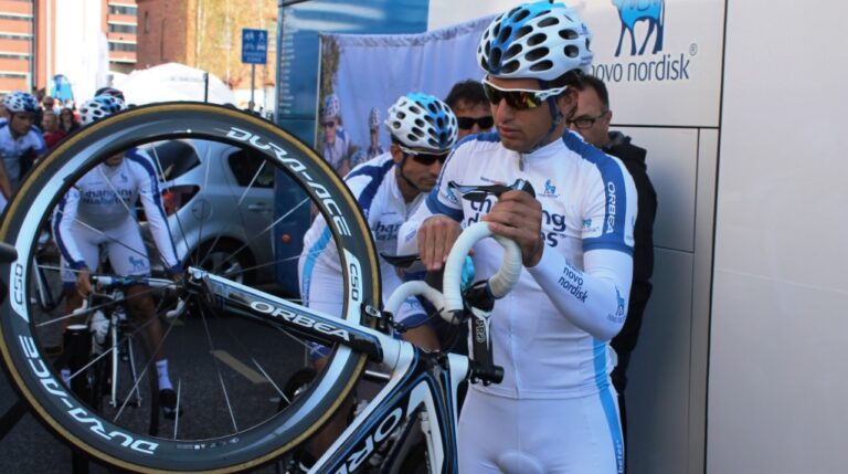 And Trek have presented Voigt with a custom machine for his swansong, with matching Bontrager shoes and helmet. Voigt’s one-off bike includes a graphic on the top-tube which pays tribute to key moments in the Trek Factory Racing rider’s career, as well as the teams he has ridden for and his family (his wife Stephanie, their six children, and their dog Linda).