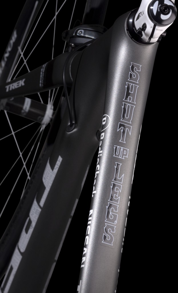 The bike is the latest in a line of rider-inspired paint schemes from Trek. Last year, during the Tour de France, Trek unveiled limited-edition paint schemes for Frank and Andy Schleck, as well as a Spartacus-themed bike for Fabian Cancellara.