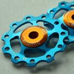 KCNC’s Jockey Wheels are made from 7075 aluminium and anodised with various colour options. Sealed ceramic bearings and anodised dust covers should reduce drag in your drivetrain and they’re available for Shimano, SRAM and Campagnolo setups. Various teeth choice are available: 10T, 11T, 12T, 13T. 9g each and £29.99.