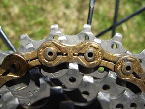 It’s a bicycle chain, and a very expensive one at that. However, this time the gold-coloured coating is no bling joke but a surface treatment that should greatly extend service life in harsh operating conditions.