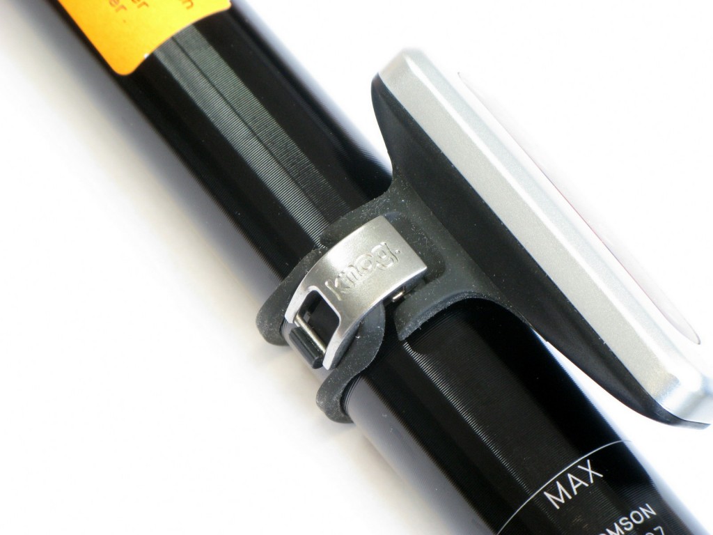Knog’s existing lights, which remain in the range, have a silicon rubber skin which fits closely over a hard plastic housing, but the Blinder has an anodised aluminium front cover, with a plastic rear, moulded to a silicon strap with a redesigned, stainless steel camber clip.
