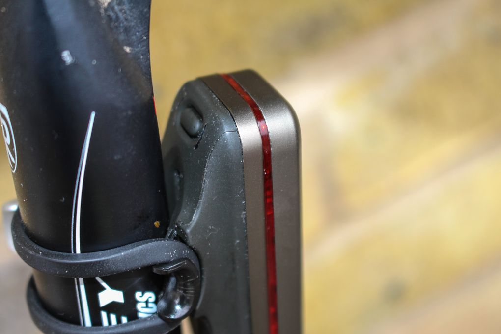 All that means the Blinder Road R70 is a pretty versatile light when it comes to mounting. Despite using a rubber strap with a plastic fastener (yep, it’s plastic despite the metal look), hold is secure, even on thinner tubes, although Knog don’t recommend it anything with a diameter less than 22mm. That plastic faster is removable so you can change it easily between bands when you want to mount the light on a different sized post. I don’t have anything with a 22mm diameter post to test that out, but it worked well on a standard 27.2mm post as well as the aero profiled seatpost on my Cipollini.