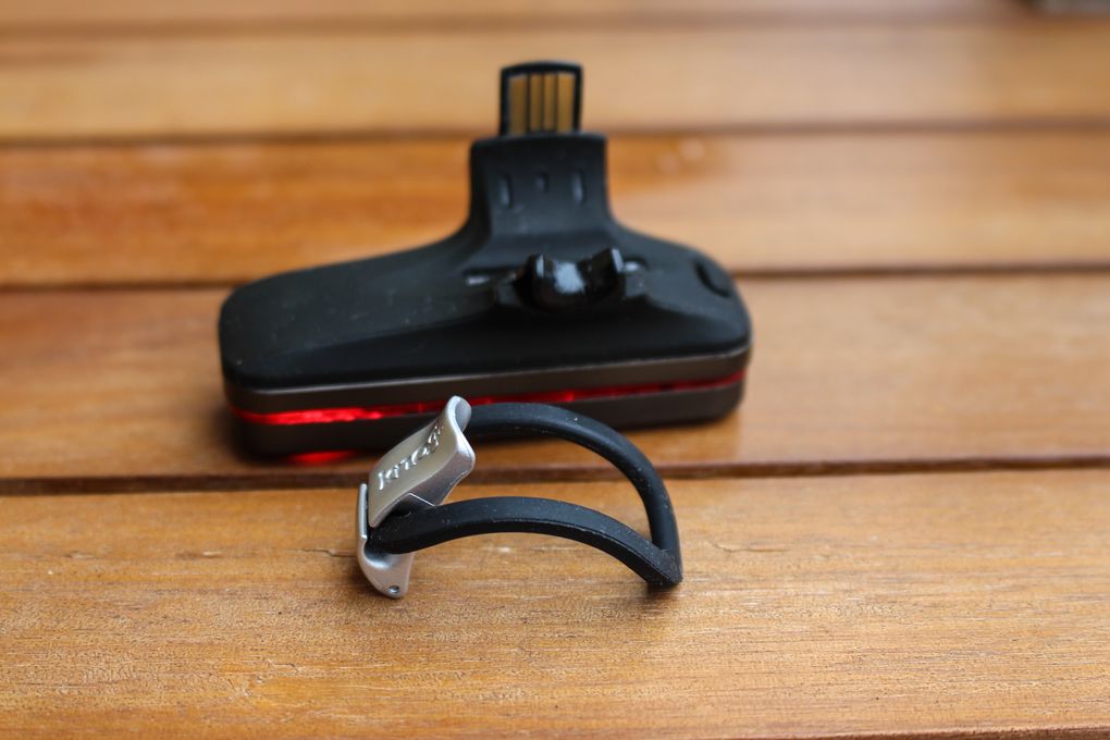 The reason it fits so well on such a wide range of sizes is that you get three rubber bands in the box. It’s not a conventional rubber band attachment though, it’s much smarter and together with the plastic fastener makes for a very secure fitting. The only worry would be if the other side onto which the strap hooks were to get damage, but given that it doubles up as the USB charger, the light’s pretty much done for should that happen.