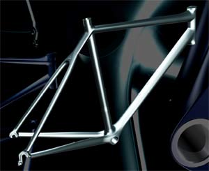 The most interesting innovation from LeMond is the alignment of carbon fibres at either 20deg or 45deg to the tube centre line. This feature is said to obtain the best ratio of stiffness to weight of fibre; meanwhile, frame members including the down tube, head tube and chain and seat stays have been reduced in external dimensions but reinforced with high-modulus carbon fibre to shave weight with no loss of stiffness. The result is noticeably more slender than the standard Carbon Triomphe shape. Carbon rear dropouts with aluminium facings complete the frame specification.