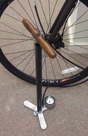 A first for 2009 is a four-model range of track pumps, which start with this £39.99 Classic Floor Drive model. All the pumps in the range share similar aesthetics, including wooden handles and clean steel pistons and barrels, aluminium feet and a large easy-to-read pressure gauge accurate up to the pump’s maximum 160psi. An alloy flip-thread chuck offers both Presta and Schrader valve fitment and docks at the base of the barrel, using the elastic hose to stay in place.