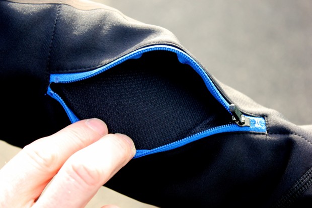 The pockets were plentiful, but small. The chest pocket wasn’t deep enough to accommodate much more than a bank card. Similarly, the rear pockets could best be described as tall and deep, where broad and shallow might have been preferable. This was an advantage for the centre pocket, which provided a secure home for a mini-pump and energy bar, but rescuing inner tubes or a mini tool from the 19.5mm depth of the pockets either side was unnecessarily fiddly. The zipped and waterproof valuables pocket on the outside of the centre pocket proved useful for keys, and a pocket on the left forearm – a first for us – we used for coins.