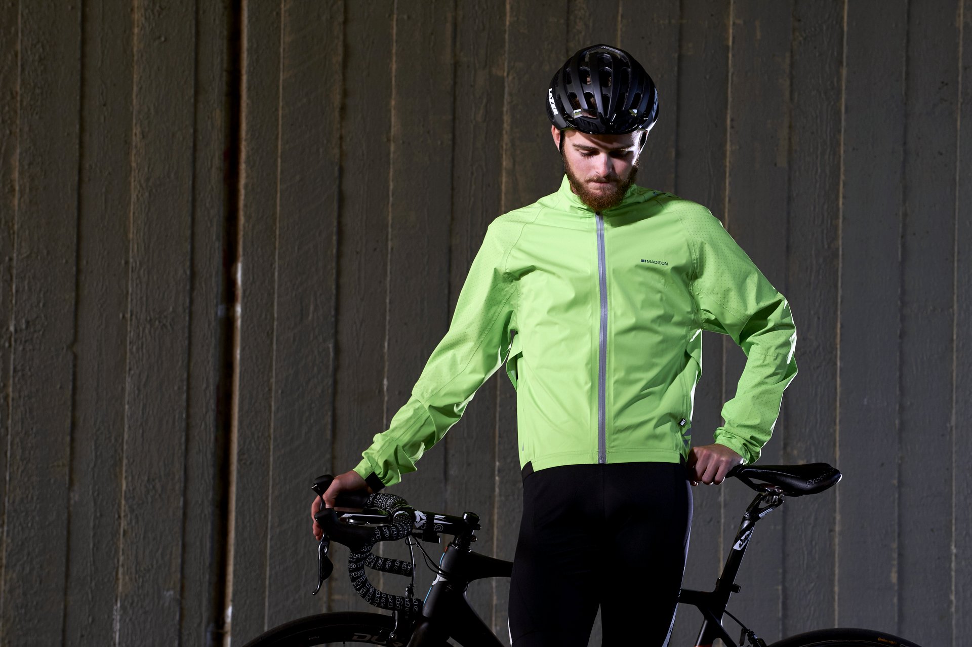 The jacket is designed to keep you safe and dry in all conditions, and was born from the brief for a waterproof jacket to withstand wet weather without any compromise to visibility, while also being able to pack down to a compact size so it can fit in a jersey pocket when not in use.
