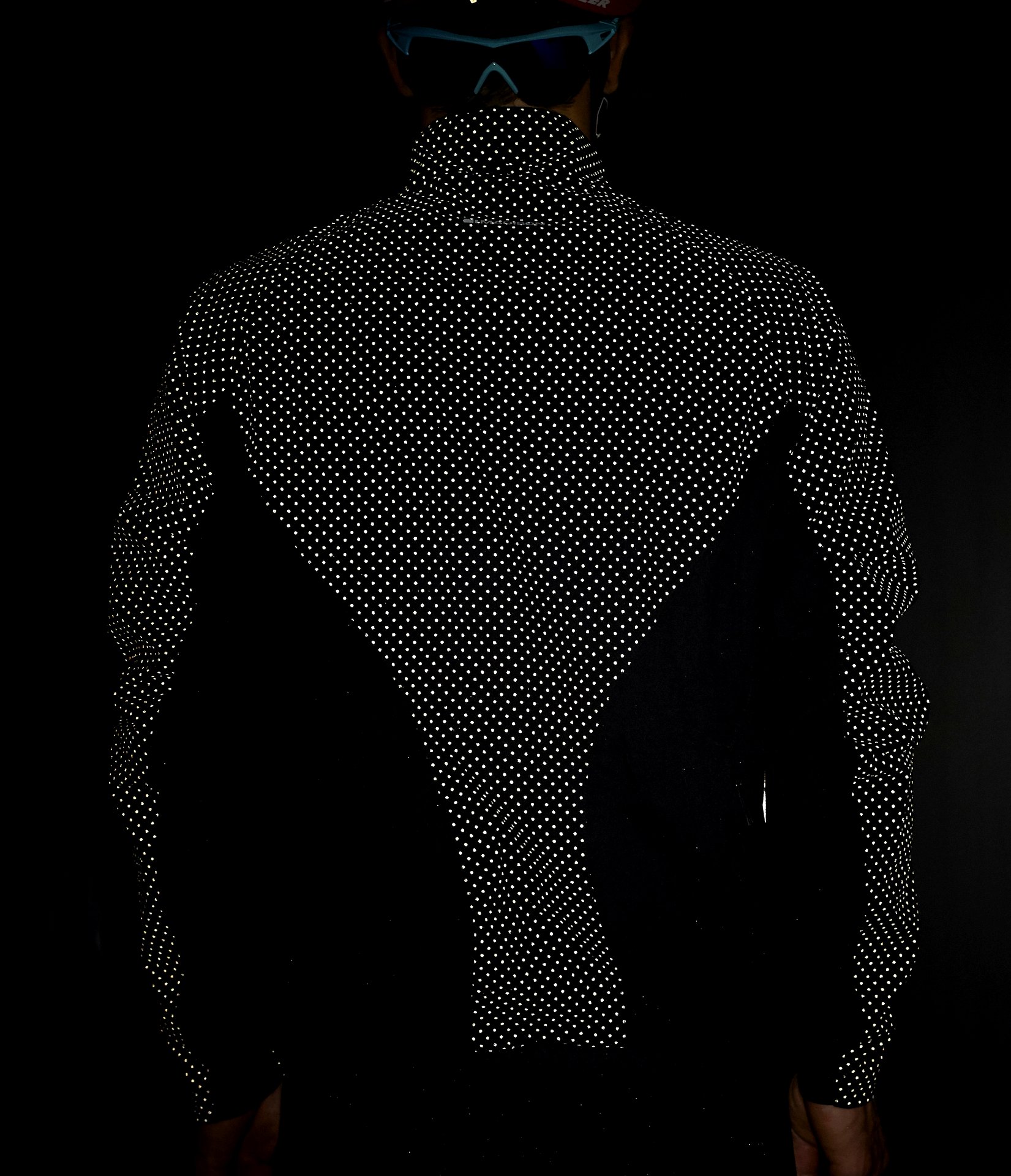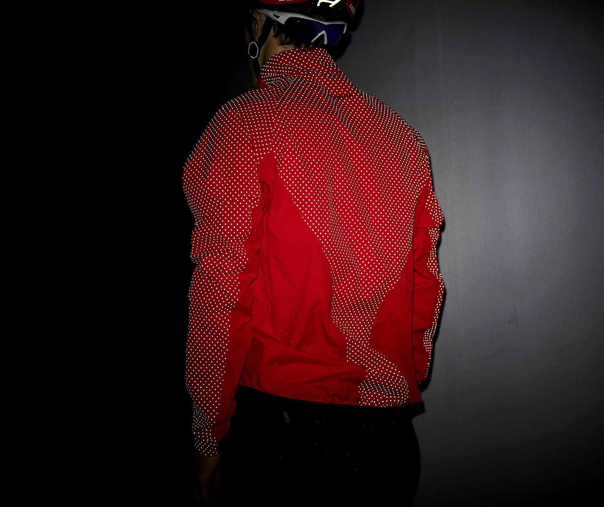“From there, we had to light the jacket up so the rider can be seen in low light conditions without affecting the breathability. Using regular reflective panels would have been a compromise as they don’t allow sweat to transfer back through the fabric, so the pixel dot fabric was engineered with our mill. After months of testing and tweaking with both our team in the office and our pros out on the road, we’re really happy with the result.”
