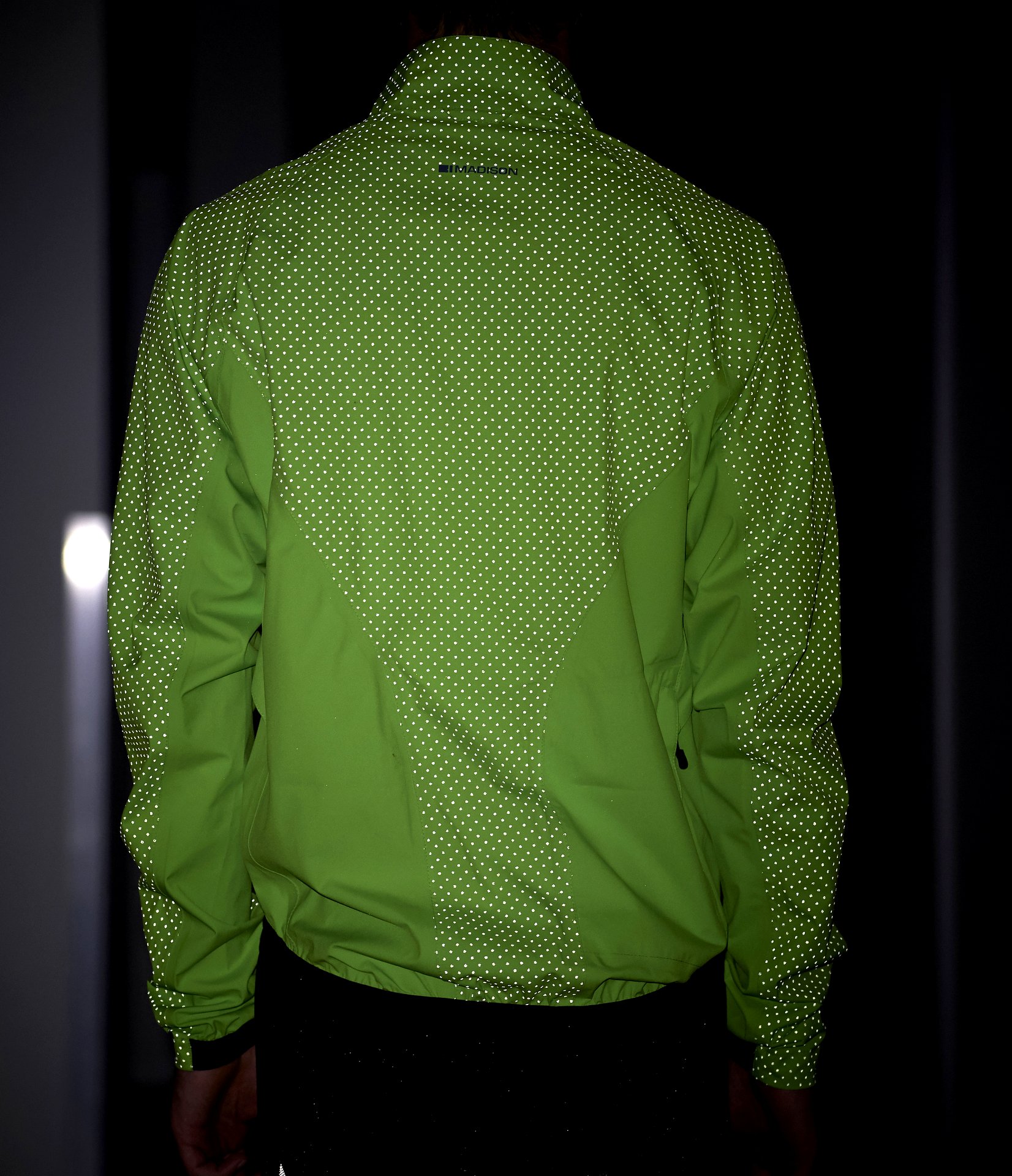 However, what makes the jacket literally stand out, is the clever Pixel Pot print fabric which coats the shoulders, arms and vast majority of the back. Each small and subtle dot is highly visible and lights up under a vehicle’s headlights or street light. The clever use of this material means, whether you’re in the drops, signalling, or have your back to traffic, you should always be seen.