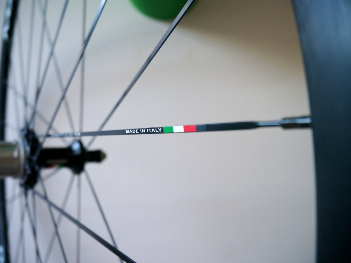 So what does the mid-priced Italian built wheelset have to offer? Well, 20 bladed, radially-laced spokes at the front, and 24 at the rear to start with (and, typically Italian, good looks). At the rear, on the drive side, they are double crossed, and protruding from the non-driveside, they are radial. All fairly standard.