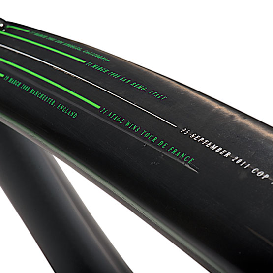 Cavendish’s autograph is also reproduced on the bottom bracket, while green stripes on the toptube commemorate the 27-year-old’s biggest victories, including his 23 Tour stage wins.