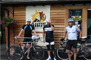 How many hills did we climb on our recce of the forthcoming Marshbrook CycleOps Power Road Sportive, which takes place on 2nd July? I can’t remember with any exactitude and, frankly, I’m feeling a bit blue about it. Not as blue as I was at the summit of the first of them, the dreaded Burway out of Church Stretton, where rain that had been threatening from the start of the ride outside Marshbrook’s Blazing Bikes shop finally decided to come down hard.