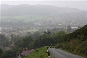 At least I had mudguards, unlike Eurosport commentator David Harmon, who chose for the ride a super-light Focus Izalco in the hope of having an easier time on the many climbs to come. Anyway, the downpour eased in time for our descent from the Long Mynd to a place called Bridges.