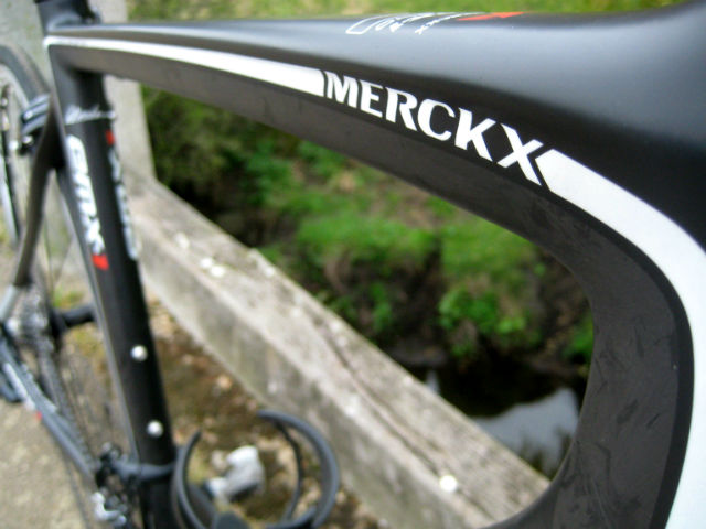 How so? Well, Merckx’s carbon range is split into four bikes, with the top-end EMX-7 and EMX-5 (raced by Tom Boonen and his QuickStep team-mates last season) revolving around the ‘pro geometry’, while the EMX-1 and EMX-3 are designed around the company’s ‘performance geometry’, where the trick is in creating a more relaxed ride while retaining the frameset’s thoroughbred instincts.