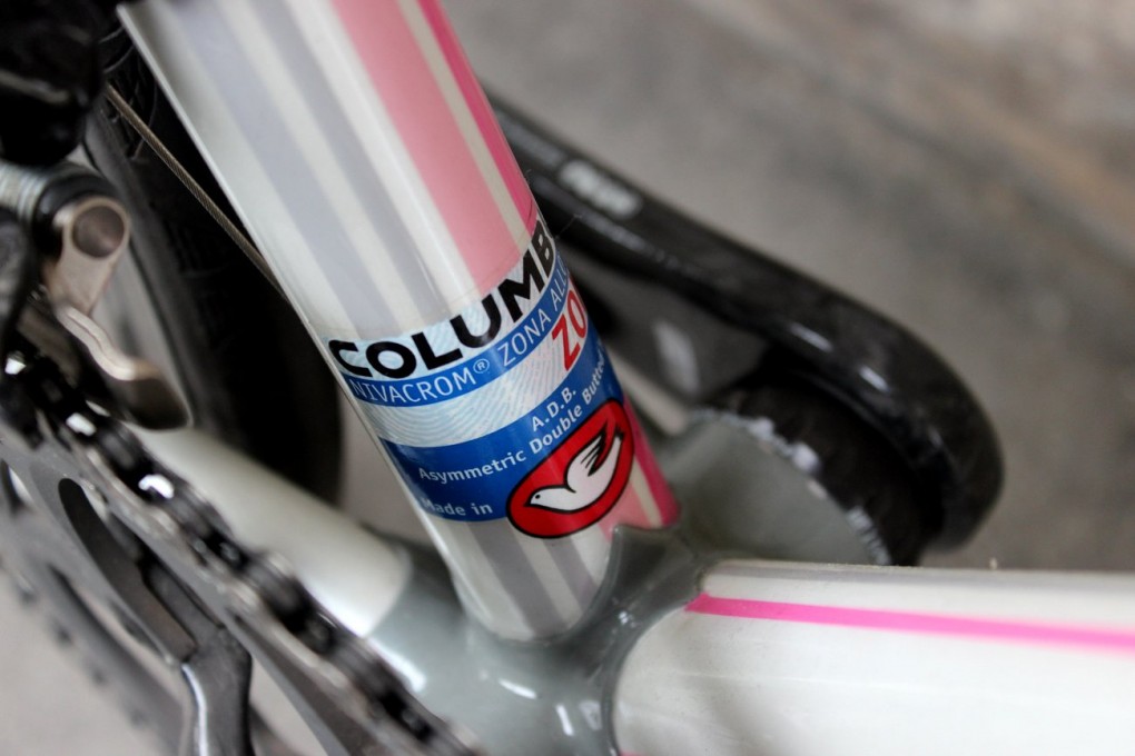 All Merényi bikes are made-to-measure, with customers fitted at Mosquito, and all frames are custom painted, too. Our machine is finished with a stunning pearlescent white, grey and pink paintjob.