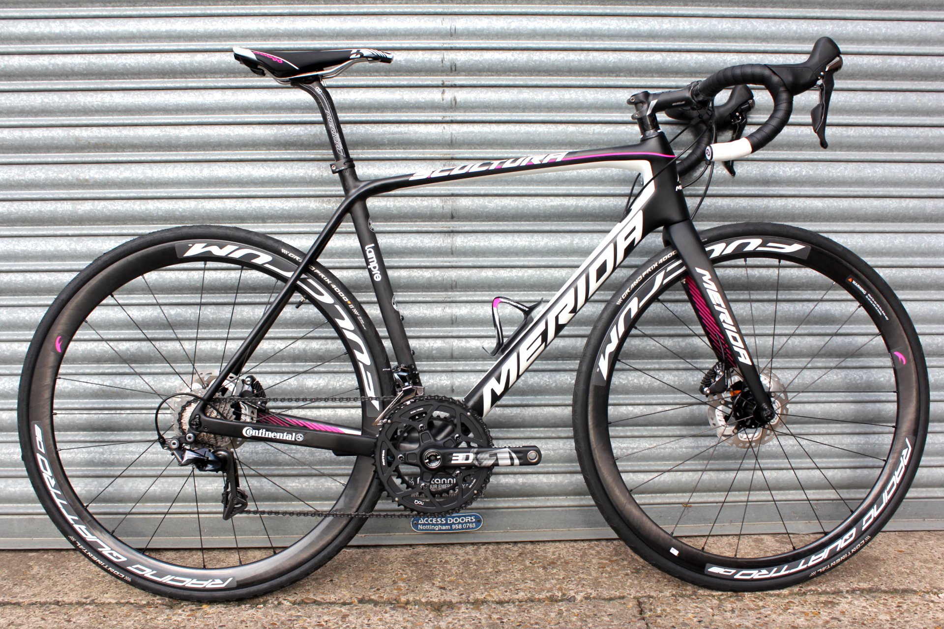 While the UCI’s temporary ban on disc brakes for racing saw the Scultura Disc disappear from the pro peloton, that hasn’t stopped Merida pushing ahead and introducing a full range of Scultura Disc bikes for model year 2017. Disc-equipped race bikes are very much the future, as far as Merida are concerned.