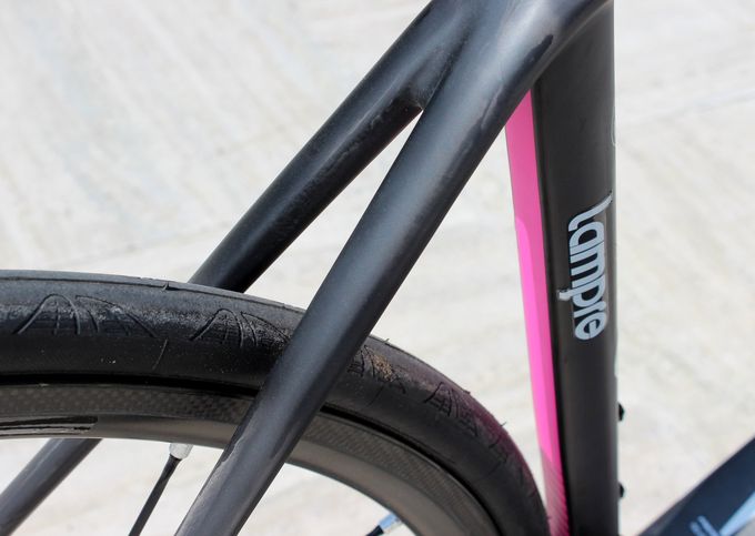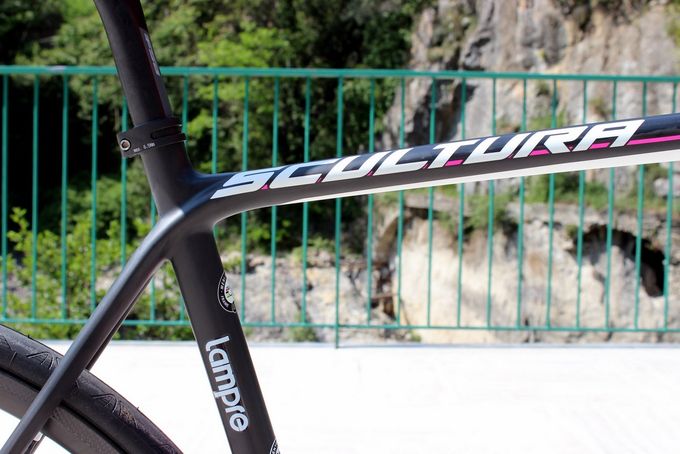 Back on track… so why are Lampre-Merida only riding the ‘heavier’ Scultura Team frame, when, at WorldTour level, they’re surely seeking every advantage possible, whether it’s using the Scultura on the toughest mountain stages of the Giro d’Italia, or the Reacto Evo on flat or rolling stages? Falke says there are two primary reasons.