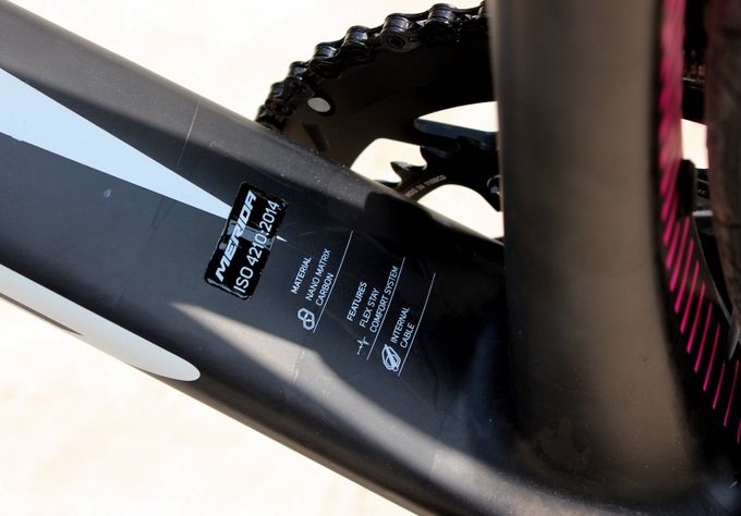 Merida have also moved the rear brake from the seatstays to behind the bottom bracket, though this is as much to improve comfort, reportedly allowing the seatstays to flex both horizontally and vertically, and growing the area that can flex as there’s no brake bridge, as it is to improve aerodynamics.