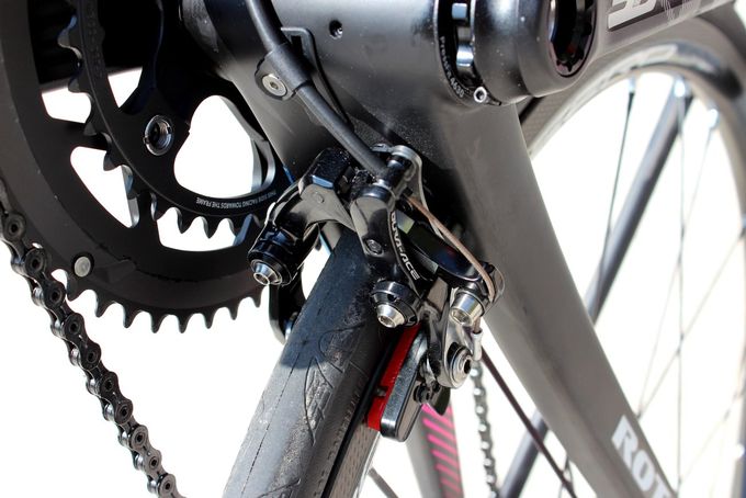 That’s the Scultura’s two key design objectives – weight and aerodynamics – covered, now let’s run through some of its other features. The existing Scultura was only capable of fitting a 23mm tyre at the rear, but, given the trend towards wider tyres, Merida’s designers sought to change that here. “When we started the [Scultura] project [in 2006], 23mm was the road standard, 25mm was more for touring,” said Falke. We’ve covered the benefits of switching to a 25mm tyre before [LINK] and one of them is comfort, as it offers a bigger air chamber and the tyre can potentially be run at a lower pressure, without impacting on puncture protection and rolling resistance. Moving the Scultura’s rear brake from the seatstays to the bottom bracket is also driven partly by comfort, while Merida’s ‘Bio Fiber Damping Compound’ basically means they’ve tweaked the carbon layup in key areas to allow for more vibration absorption. There’s also a 27.2mm seatpost – a standard move by manufacturers seeking to improve comfort. All that results in a claimed 30 per cent improvement in comfort over the old Scultura – Merida’s figures, not ours.