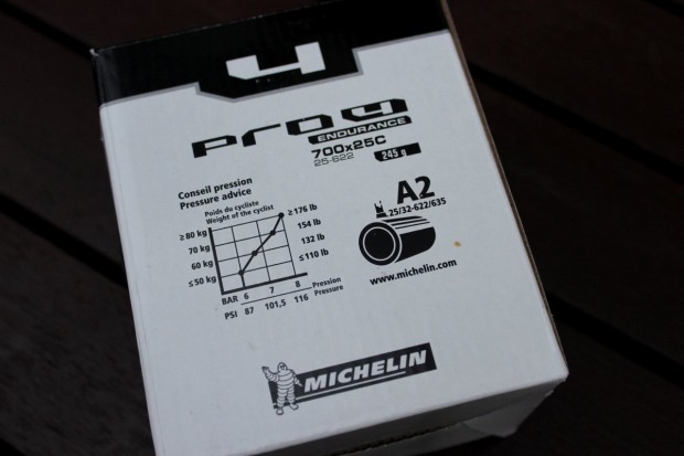 Michelin recommend inflating the 25mm Pro4 Endurance to between 5 and 7.5 bar (73 to 109 PSI), compared to 6 to 8 bar (87 to 116 PSI) for the 23mm tyre. Michelin offer ‘pressure advice’ on the Endurance’s packaging, according to rider weight.