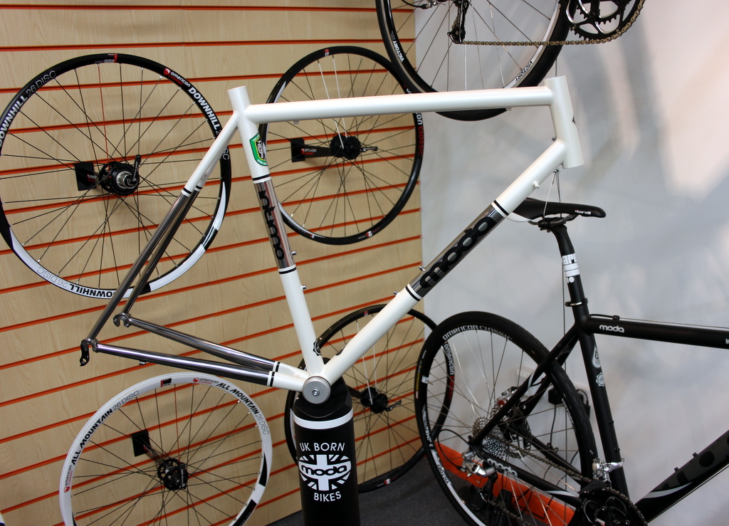 The Issimo, on the other hand, is made from lower grade, but otherwise still excellent Reynolds 931 tubing. Moda’s James Ryan told us the Derby-designed frames are the result of many hours slaving over the drawing board.