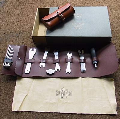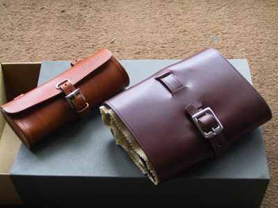The tools in the pouch look quality made to us. A lovely spoke key, a set of allen keys, tyre levers, spanners with 8mm to 15mm (pedal) and a screwdriver with a variety of fittings. There’s plenty of space to add your extra favourite out-on-the-road tools. The tool pouches cost £70 with tools included. The small (honey coloured) one has no tools and costs £35. Ask for one for Christmas, they’re gorgeous. |