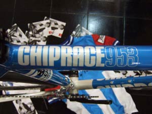The Chip Race 953 is, as the name implies, constructed from Reynolds 953 tubing. It rolls on Zipp wheels and is propelled by Zipp Zuma Quad cranks, features a Rotor S1 stem and SRAM RED transmission and should look pretty damn peachy on the front in the local chipper.