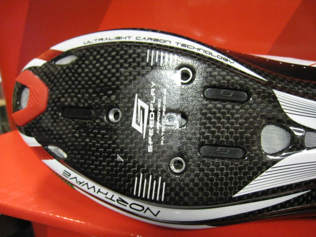 Both shoes feature a first for Speedplay users, a new lighter and lower profile cleat plate attaches to three new slots on the carbon sole. Benefits are reduced weight but more important than that is the lower stack height the system offers.
