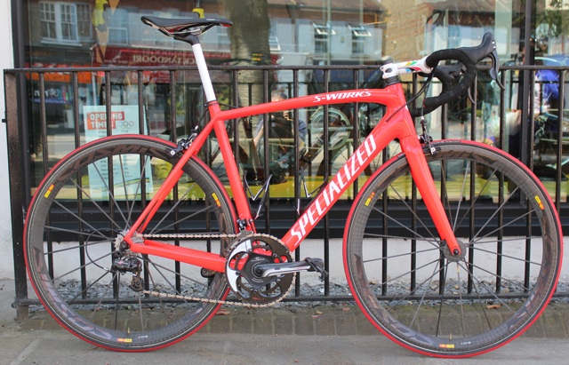 The Specialized Tarmac SL4 was launched just over a year ago. Craven’s Olympic steed is a deep red, in contrast to the black frame he rides for his trade team.