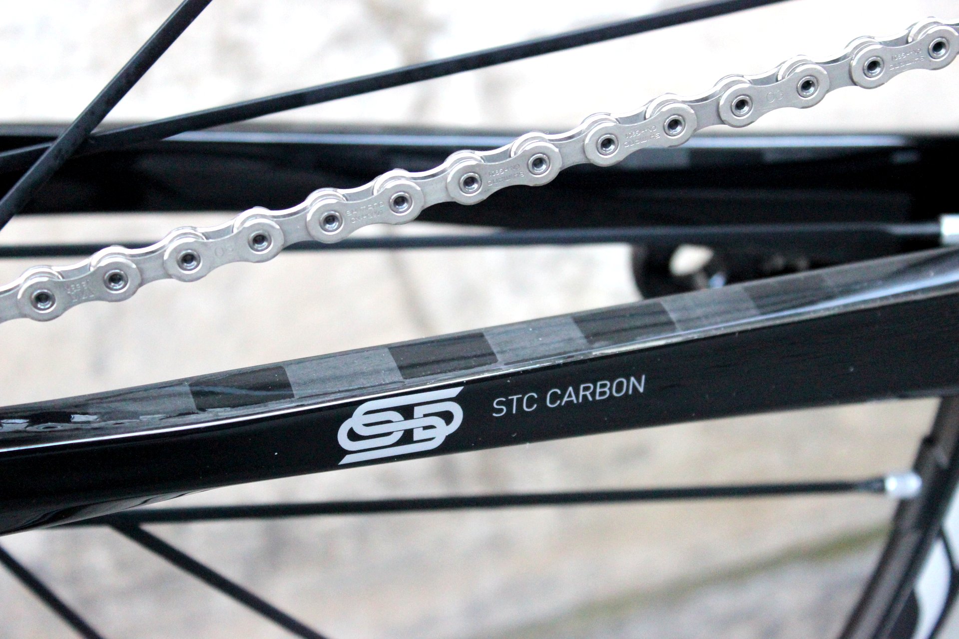 Anyway, you’ll find the STC layup in the tubing throughout the frame, with the paint job exposing it on the underside of the downtube, toptube, seattube and chainstays, as well as a similar-looking pattern in the fork.