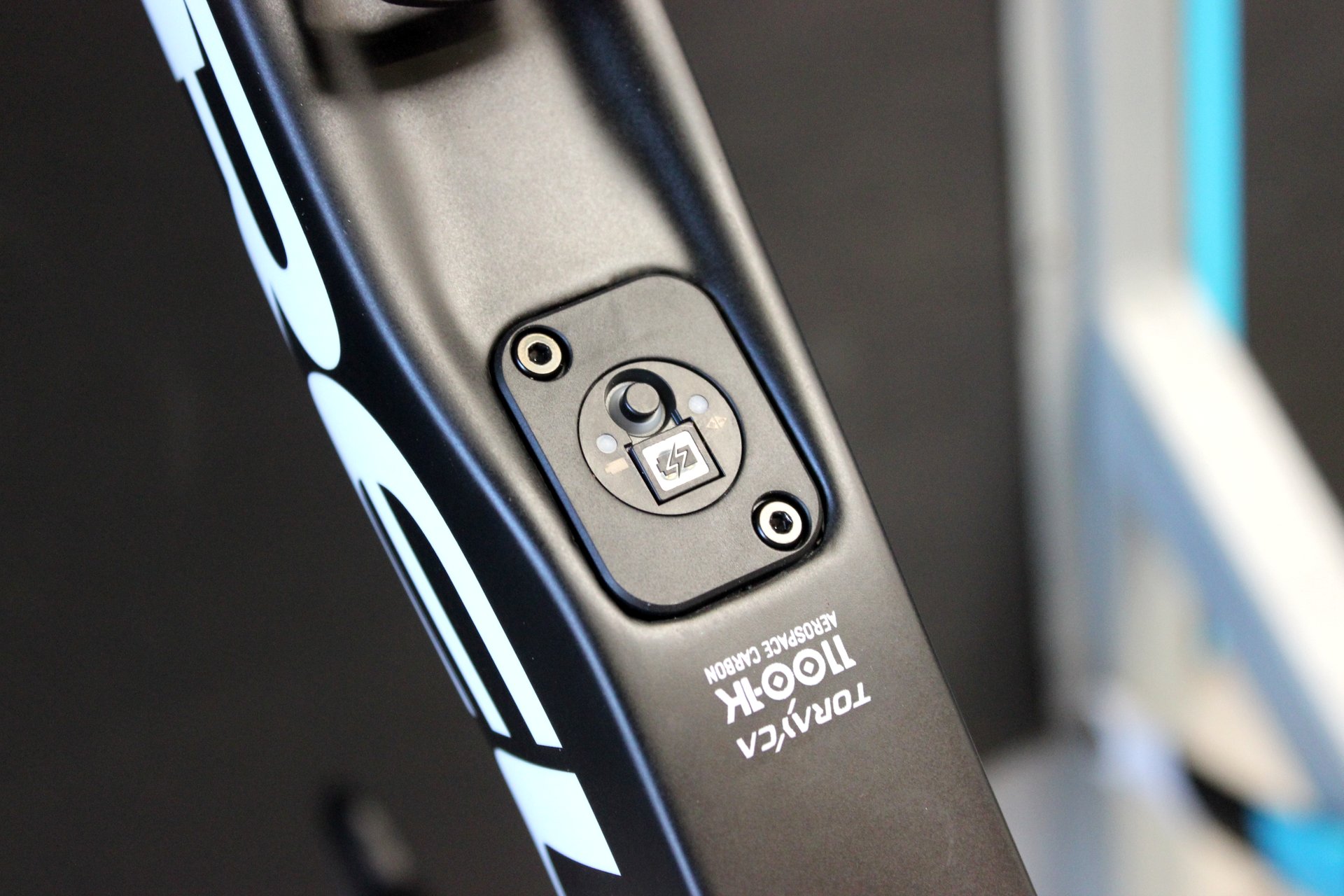 Pinarello say the Dogma F10 frame boasts the highest tensile strength in the world, as a result of the Torayca T1100 1K carbon fibre used in its construction. The frame also features a neat integrated Shimano Di2 junction box.