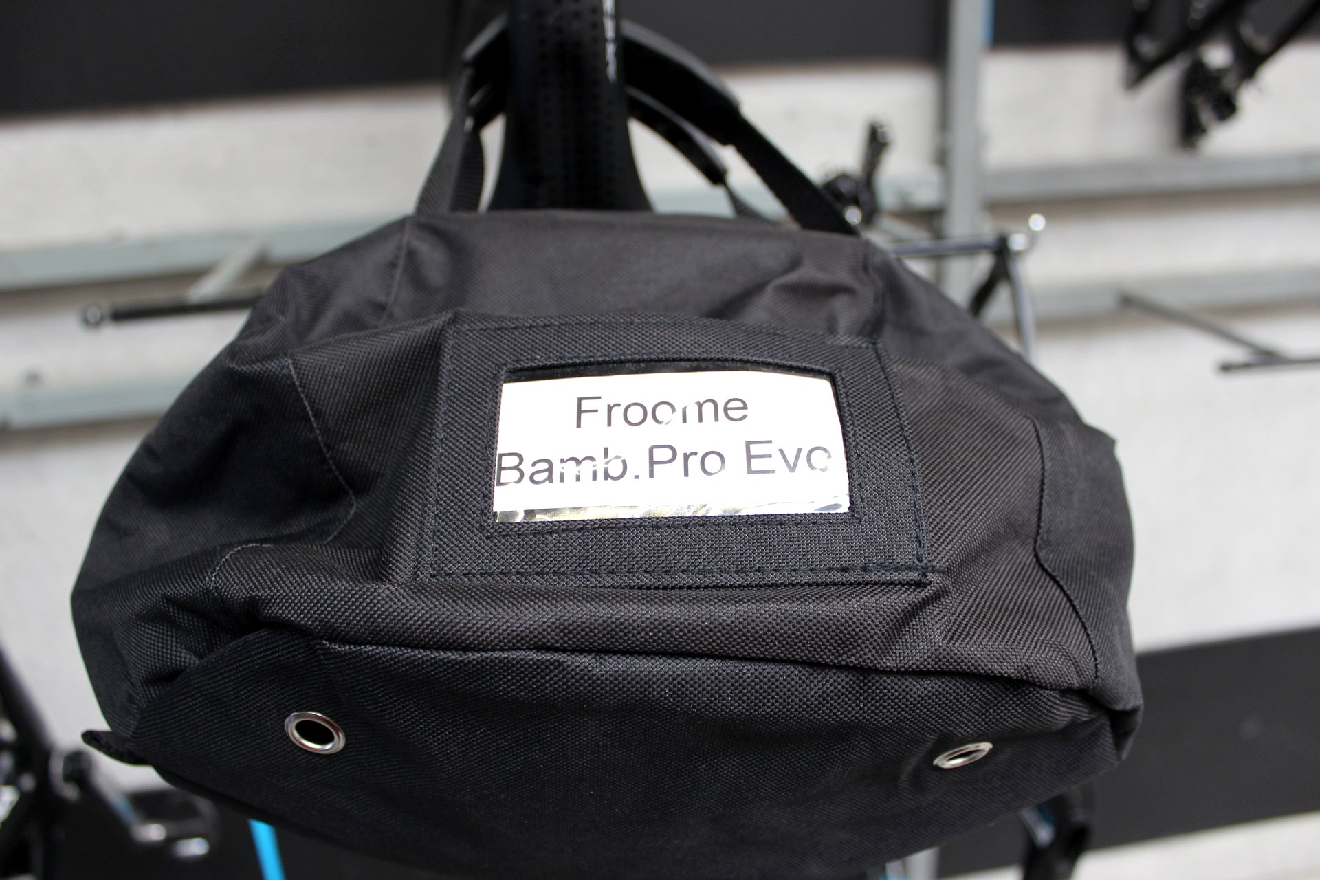 While most of Team Sky's Kask helmets are stored in one place, the Kask Bambino Pro time trial helmets are individually hung from the nose of each rider's TT bike saddle. Jeppesen says this is to prevent TT helmets being forgotten when packing for races, as has happened in the past.