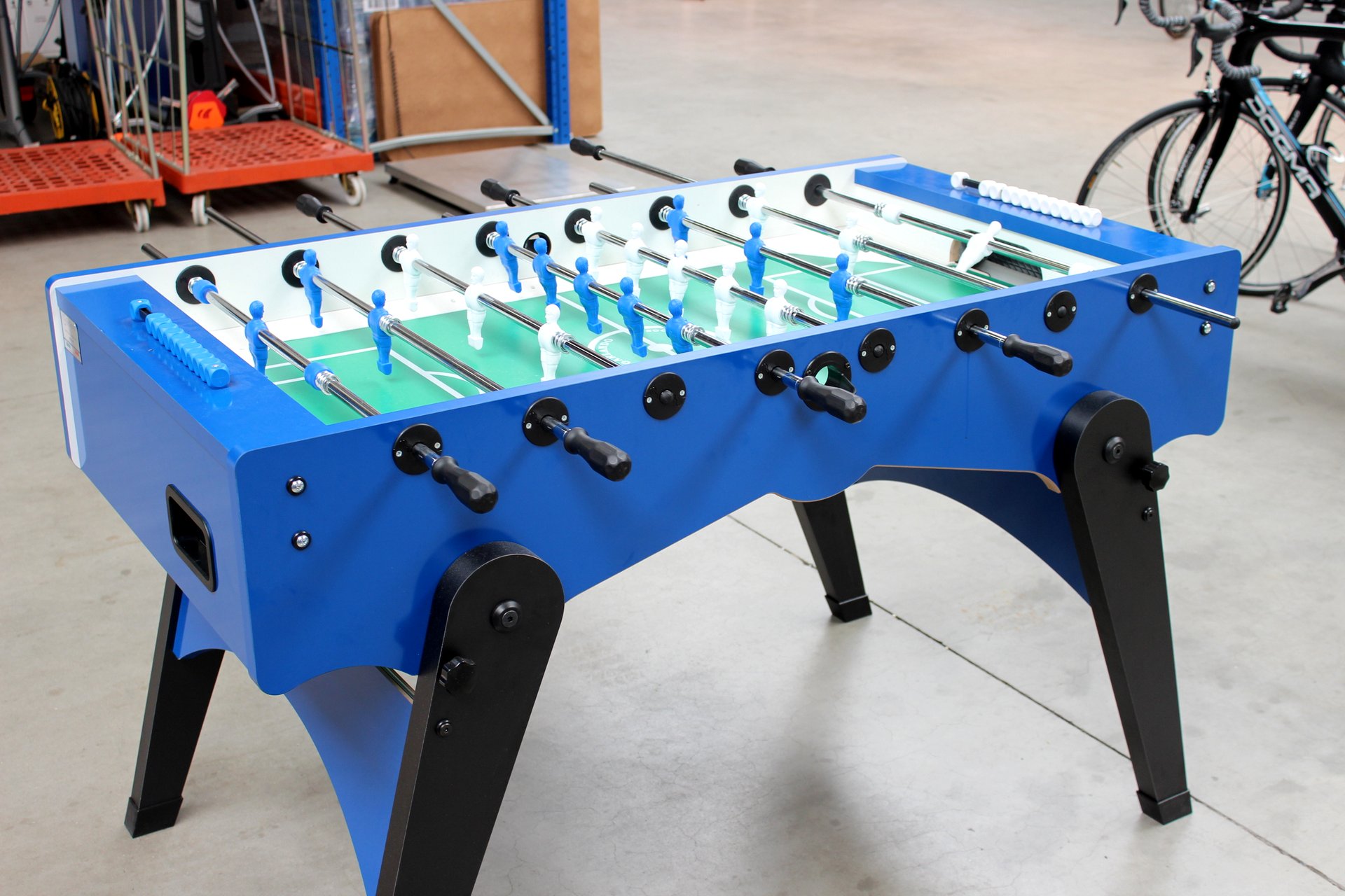 It's not all work in Deinze. This table football table is conveniently located next to the mechanics' work stations. In Team Sky blue, of course.