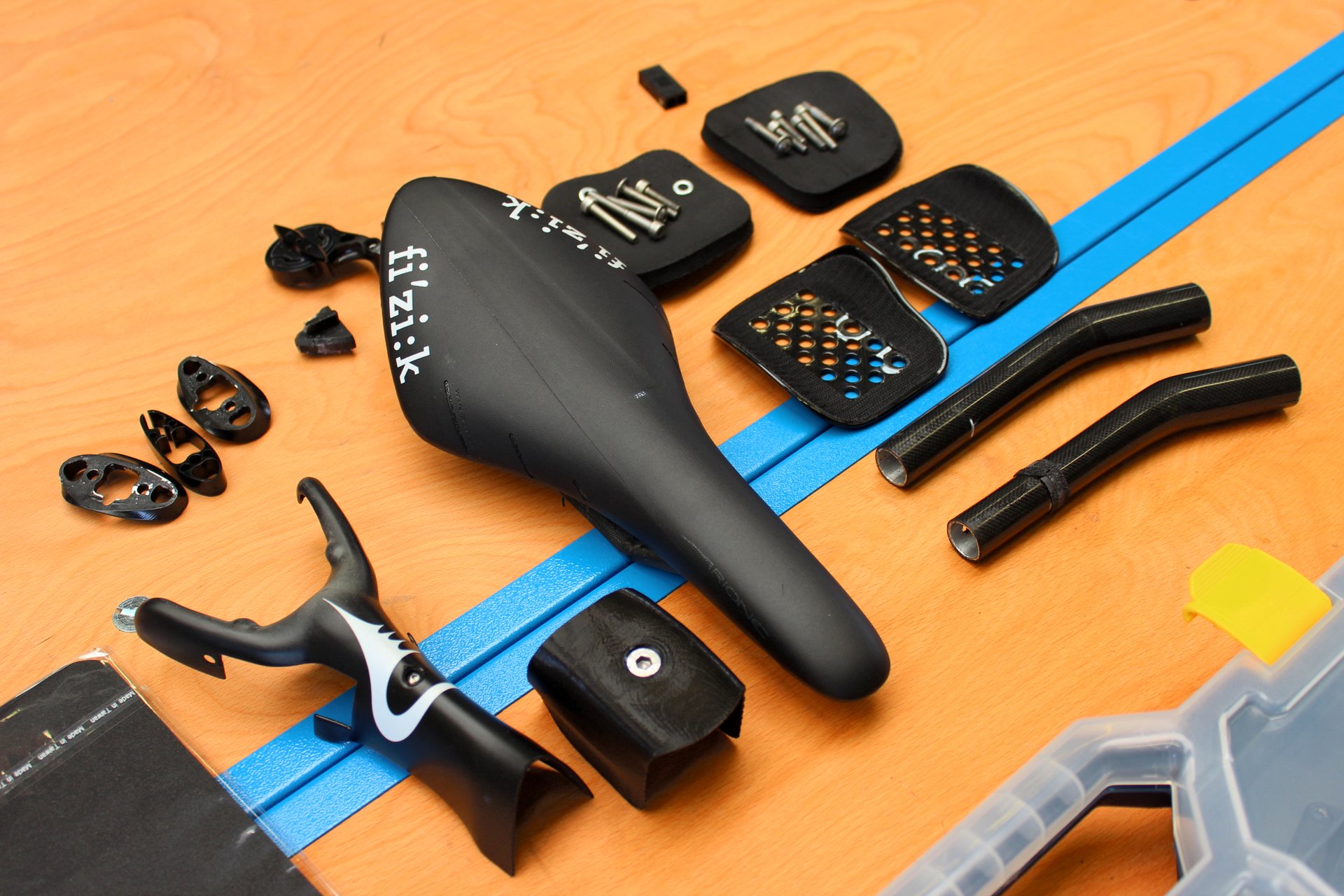 Setup of the Pinarello Bolide TT bike requires significantly more work than the standard Dogma F10, with dozens of small parts required to make the time trial machine as aero as possible.