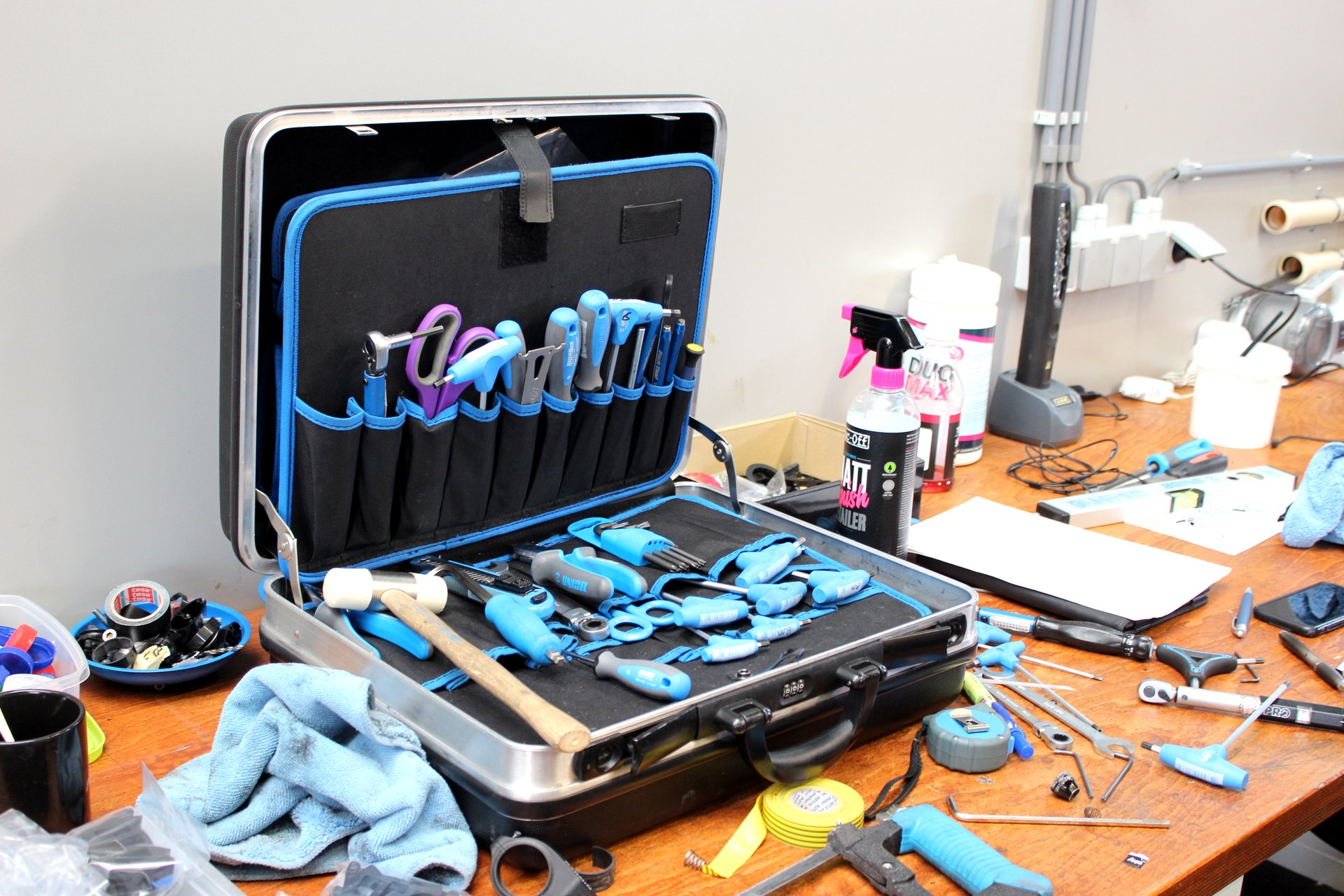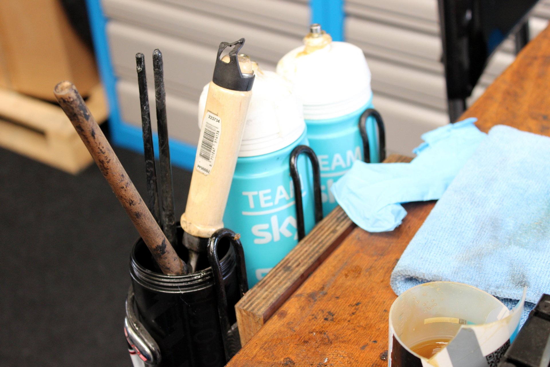 The tools of the trade. Team Sky's mechanics use Unior tools to work their magic, while cleaning and maintenance products are provided by British brand Muc-Off.