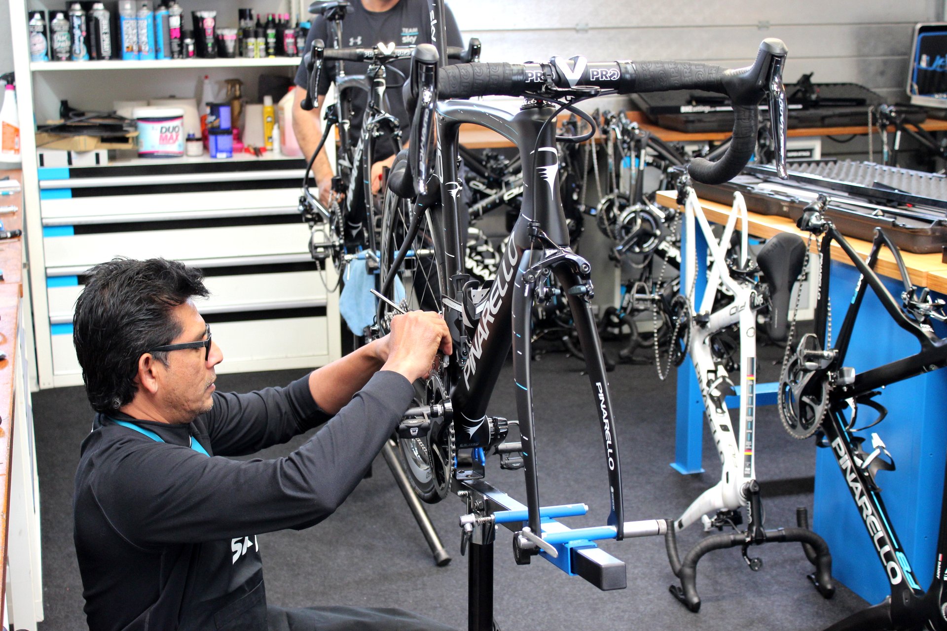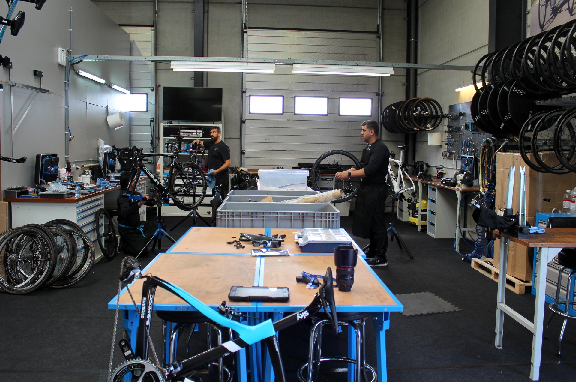 The team employs nine mechanics and, when not at races, you'll normally find them at the service course, preparing bikes for the next stop on the WorldTour calendar. The service course has six stations from which mechanics can work.