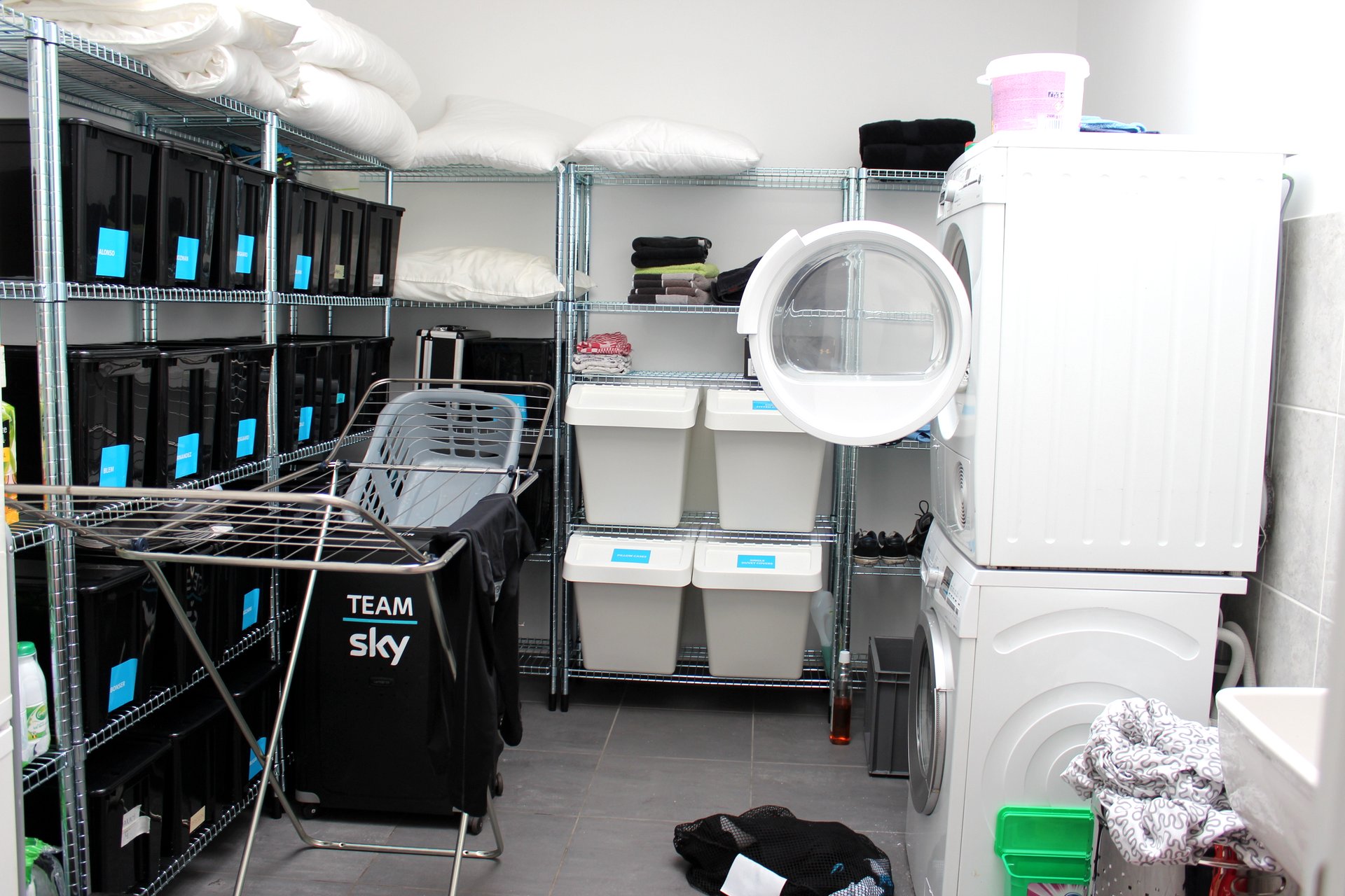There's also a laundry room, so kit and bedding can be washed. Each member of non-riding staff has a marked box to store their essentials. Rider kit is stored in the main service course.