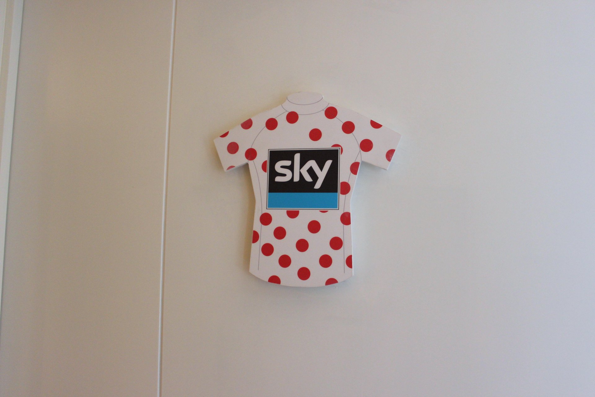 It's all about attention to detail. These mini Team Sky jersey cut-outs are found on the entrance to each of the apartment's bedrooms.