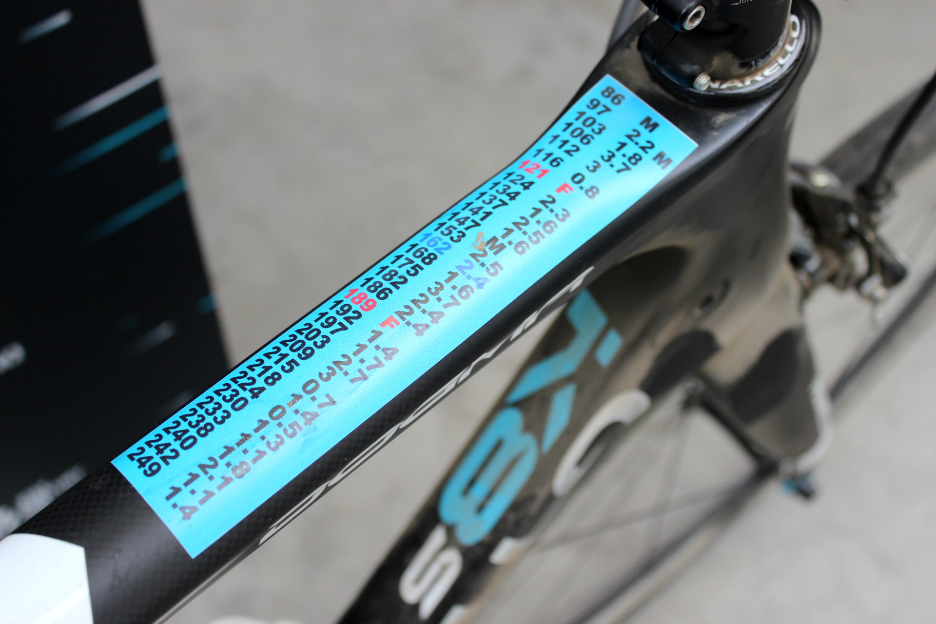 With 29 secteurs and 55km of cobbles, Moscon's race notes stretch almost halfway down the toptube.