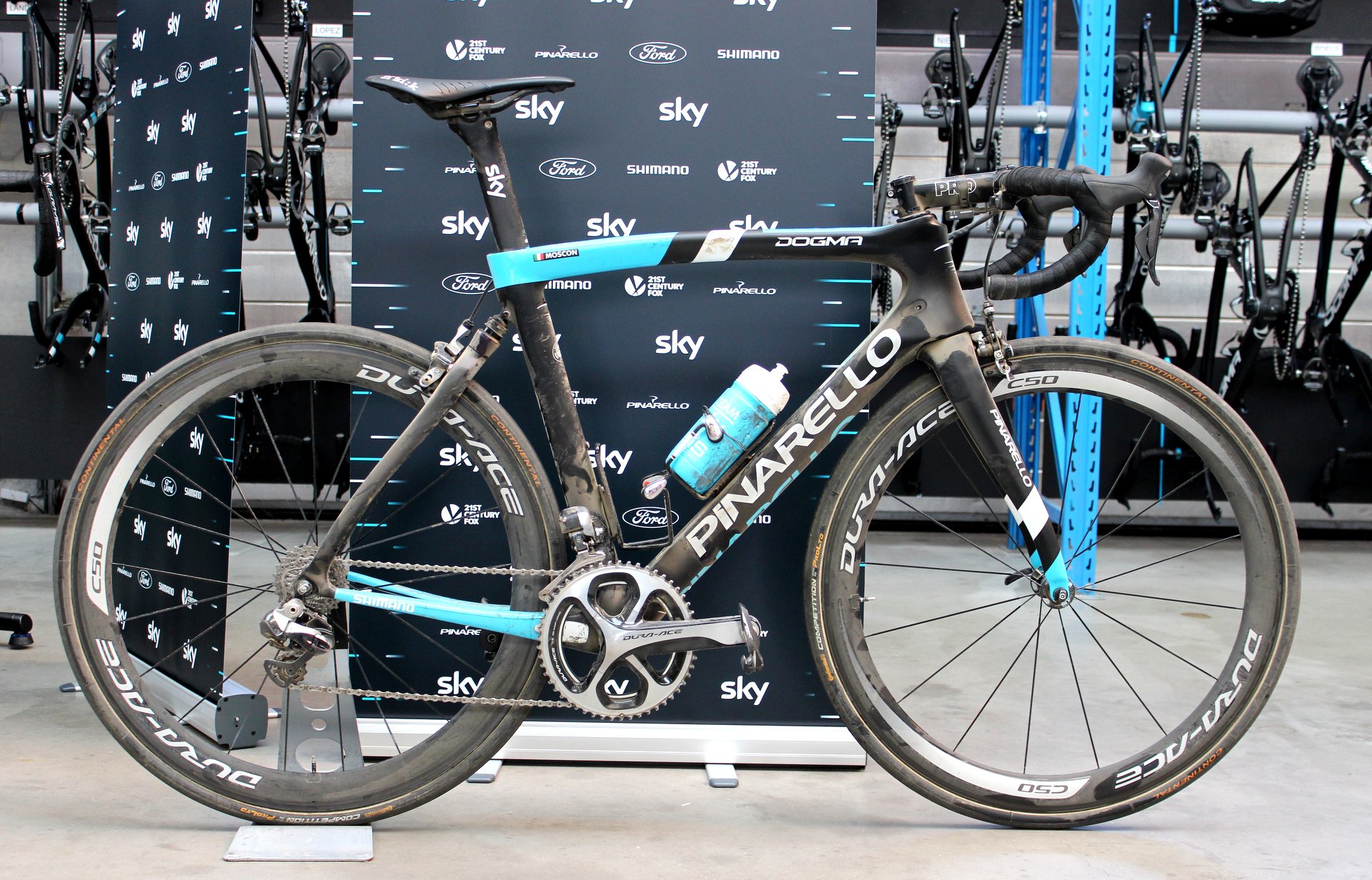 The XLight is, as the name suggests, a super-light version of Pinarello's Dogma F8. It's one for the mountains, with Pinarello stripping approximately 80g from the frame to bring the claimed weight down to a claimed 710g. Froome is now riding the latest version of the Dogma, the F10, which was launched at the start of the 2017 campaign.