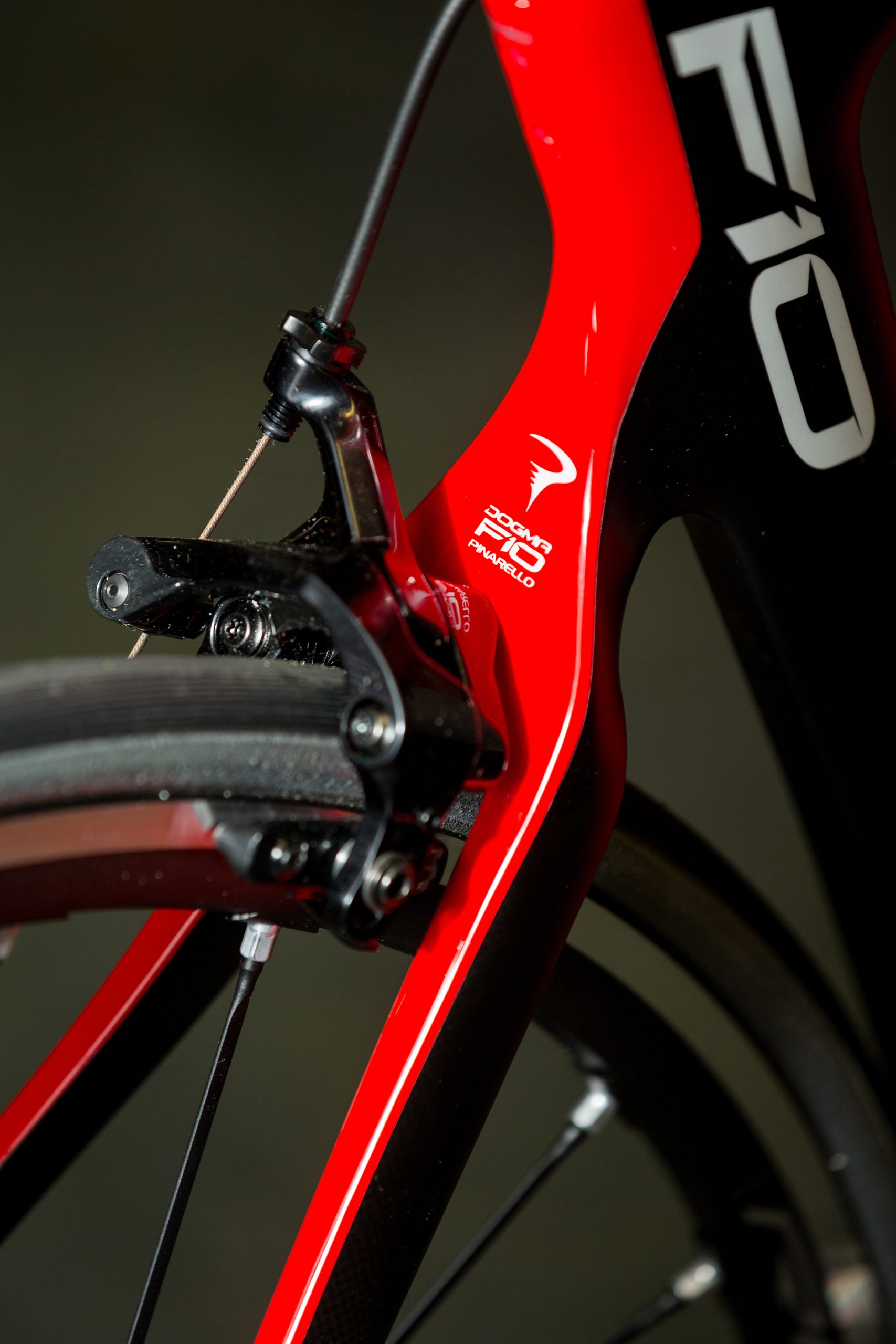 The F10 is the machine you’re likely to spot under Team Sky riders on practically any terrain this year, with the exception of the harshest cobbled Classics, where the K8 remains the extra-compliant bike of choice. The point we’re making is this: Pinarello (and Team Sky) seems to reject the current market trend of specialising bikes towards the mountains or the flat – instead opting for an all-in-one solution.