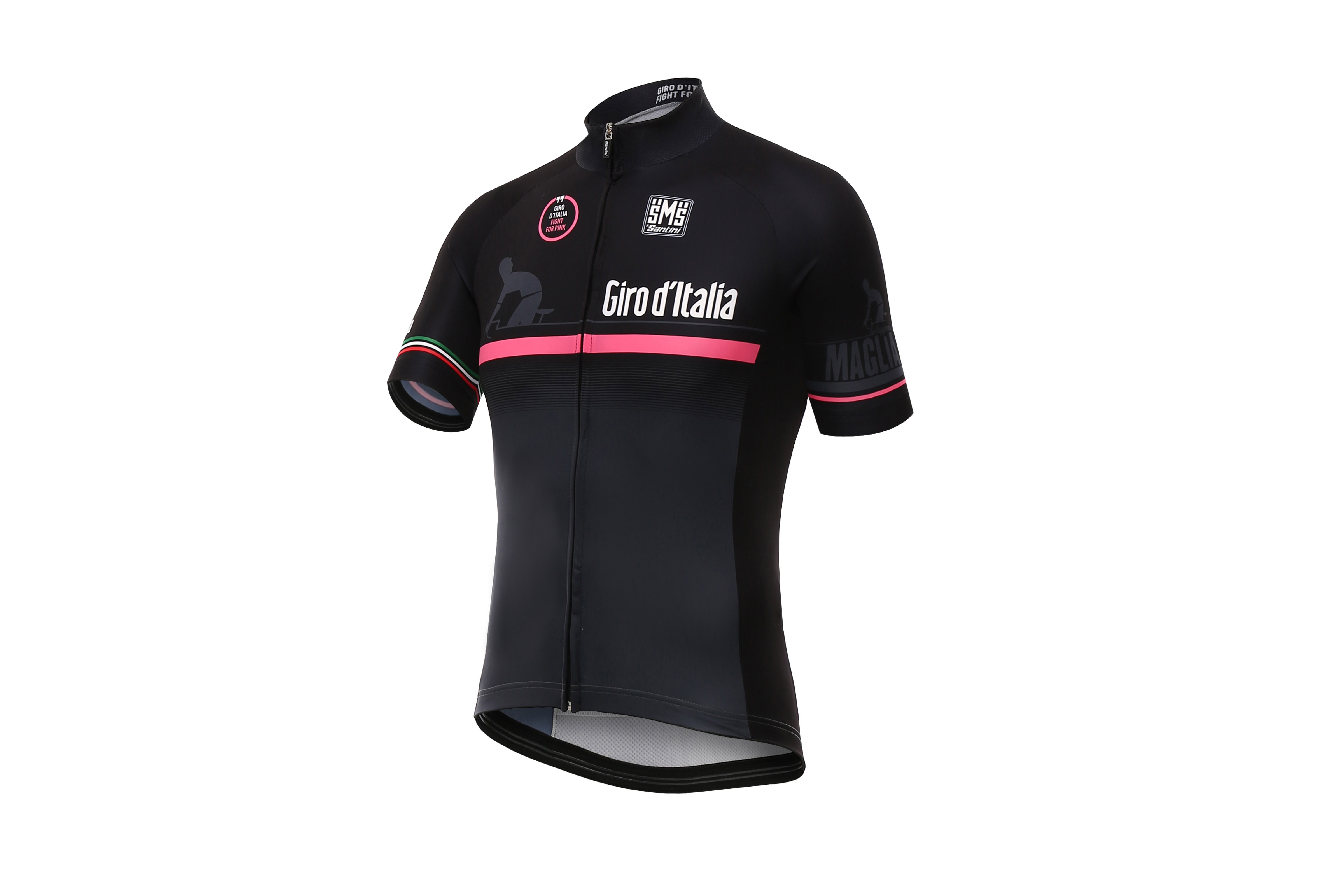 Alongside the four main jerseys – pink for the GC leader, white for the best young rider, red for the points classification leader and blue for the King of the Mountains – Santini created a black replica jersey for fans this year.